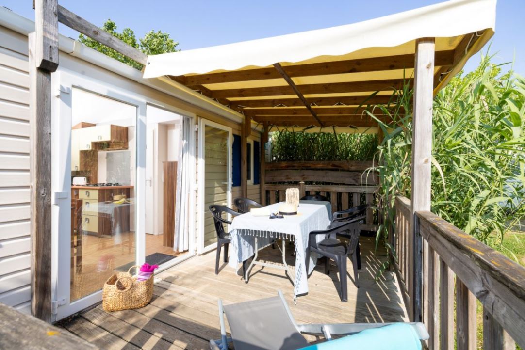 Pour vos petites escapades ou vos grandes vacances, notre mobil-home Confort 4 personnes vous invite à la détente dans un décor végétal pour le plus grand bonheur de votre tribu.