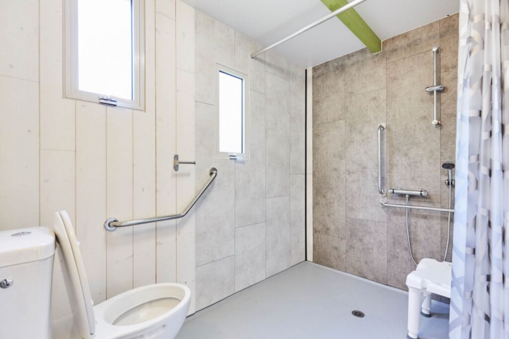 Cottage familial adapté aux personnes à mobilité réduite, avec rampe d'accès, douche à l'italienne et terrasse aménagée.